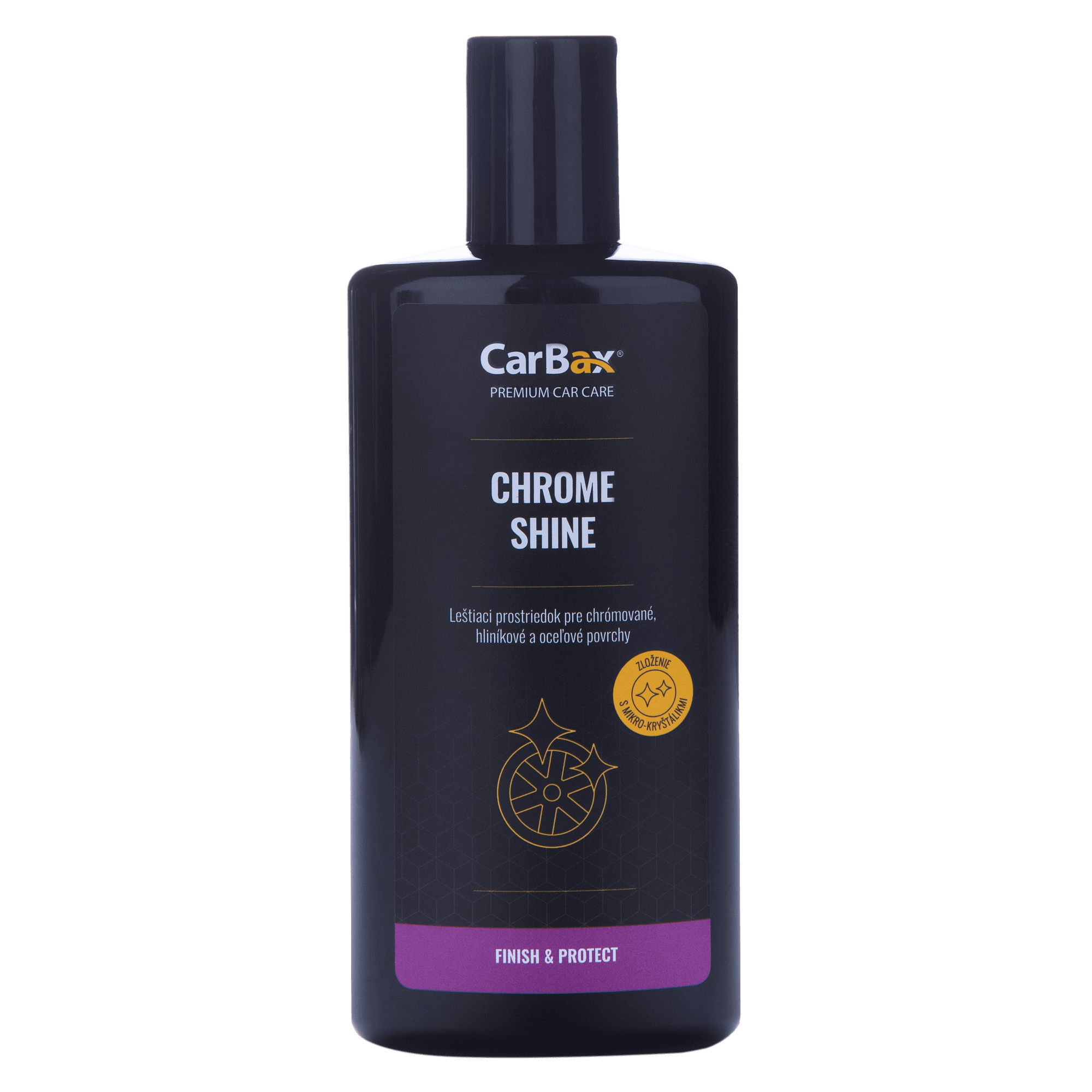 CarBax Chrome Shine - это полироль нового поколения для хромированных, алюминиевых и стальных поверхностей, таких как колесные диски или бамперы.