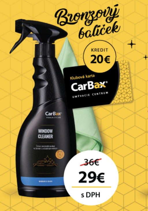 Zvýhodnený darčekový balíček s klubovou kartou pre CarBax Nitra - Chrenová a CarBax Nitra - Mlynárce, autokozmetikou a príslušenstvom pre ich aplikáciu.