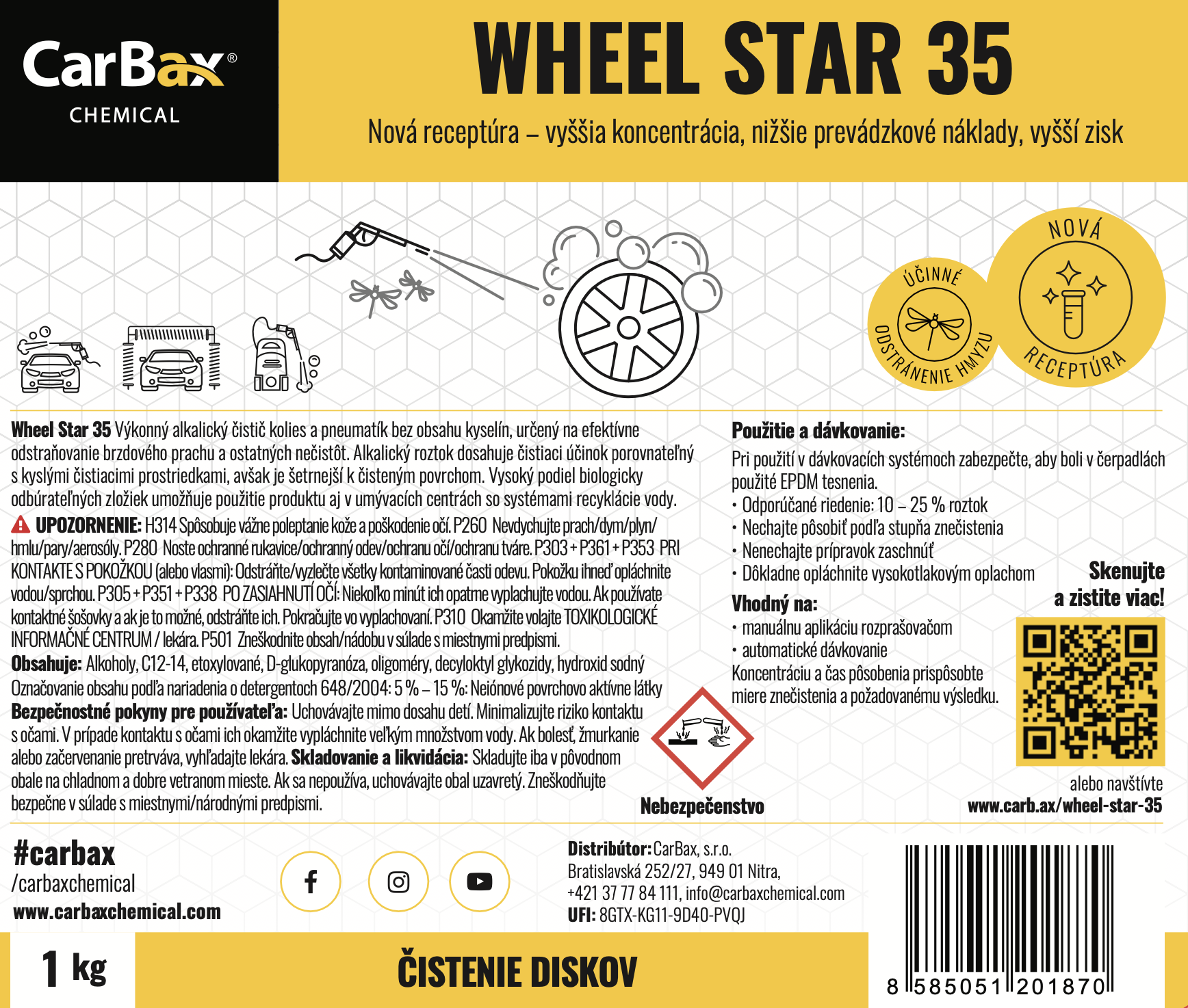 Výkonný alkalický čistič kolies a pneumatík bez obsahu kyselín, určený na efektívne odstraňovanie brzdového prachu a ostatných nečistôt.